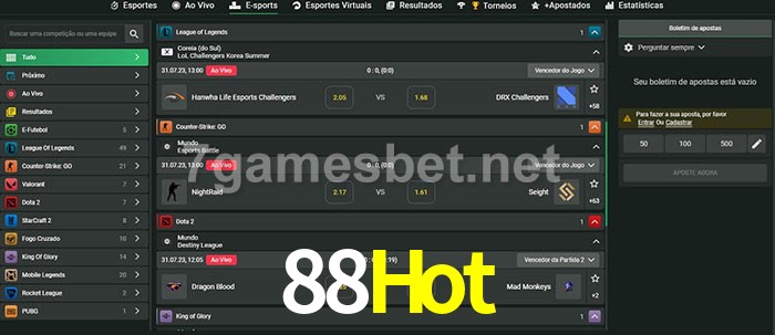 A aposta 88Hot oferece aos jogadores a experiência mais conveniente de apostas em eSports!